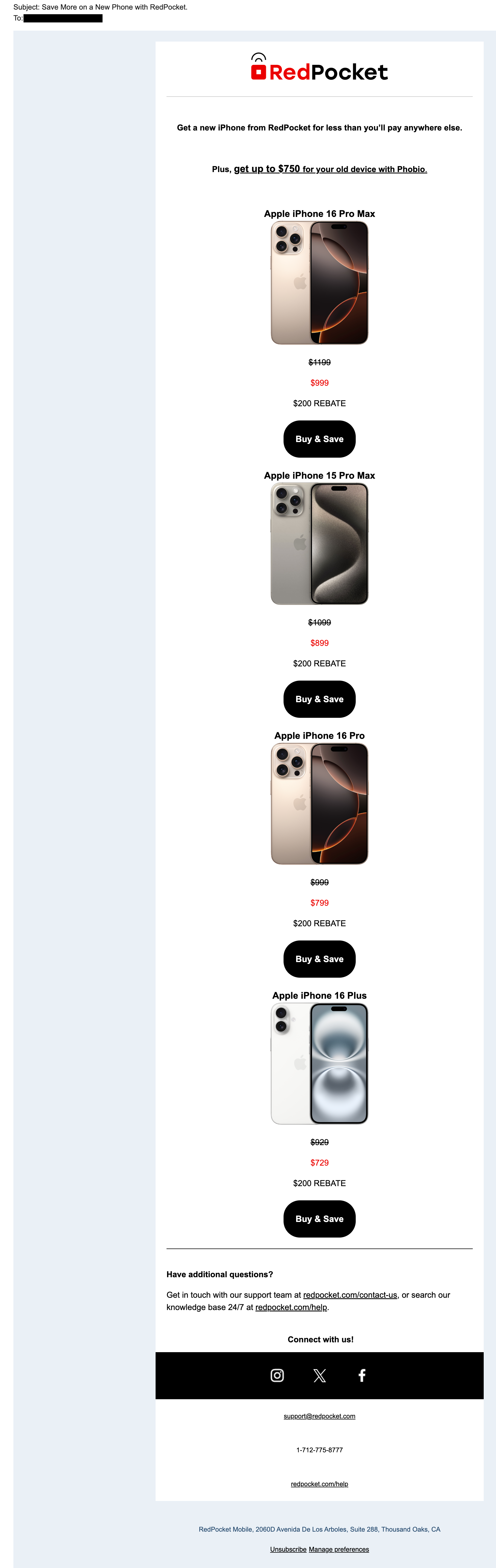 RedPocket Mobile, a cell phone company, wanted to email their subscribers to let them know about their exclusive iPhone deals. This email was sent to subscribers who had not purchased a new iPhone in the previous 18 months with the goal of selling more iPhone 16s of all models and selling out the iPhone 15 models still left in stock.