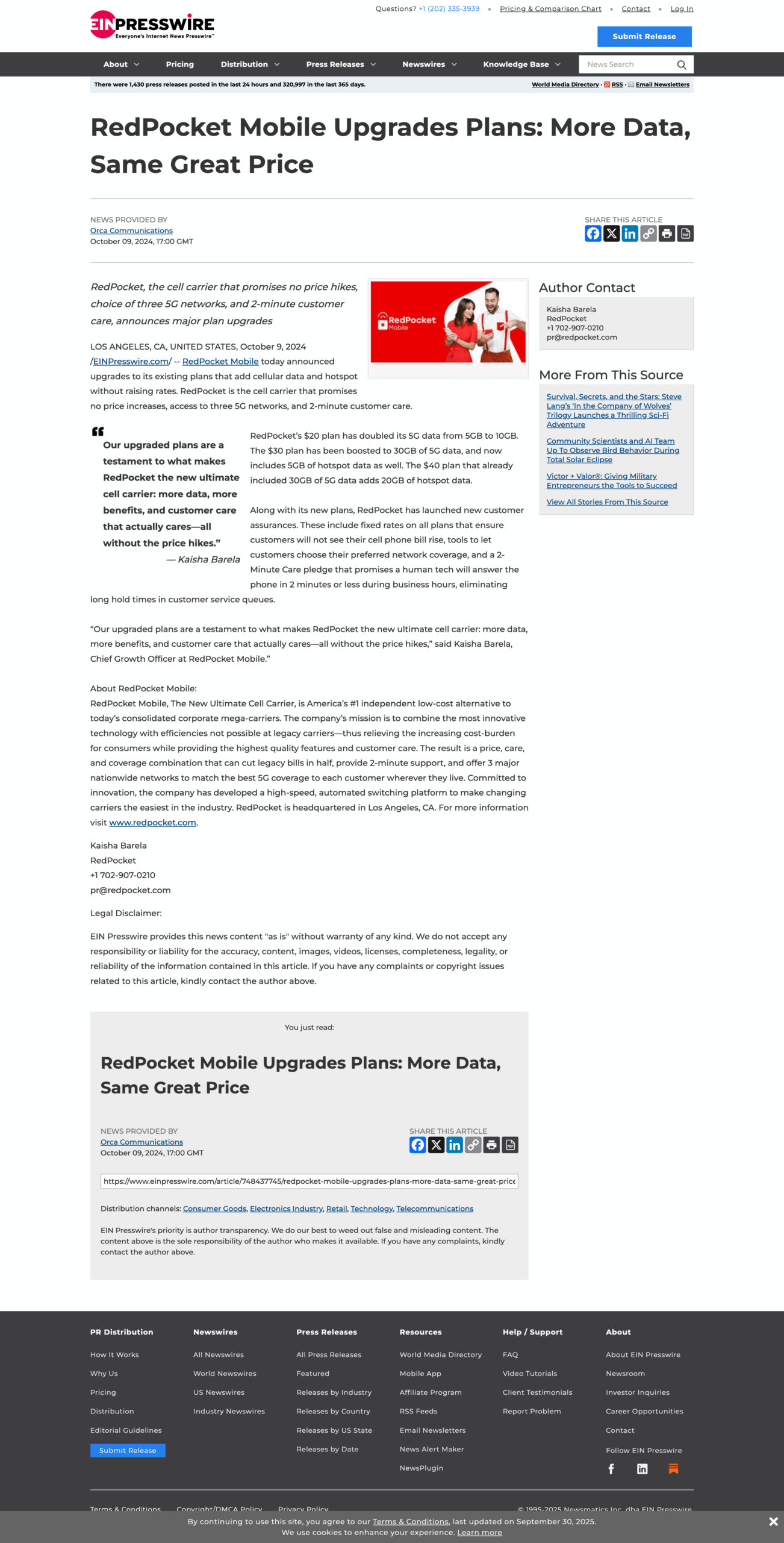 RedPocket Mobile, a cell phone company targeting millennials, needed a press release about upgrades to their service plans. They wanted to emphasize that the plan prices would stay the same, but would include more data than they previously had.