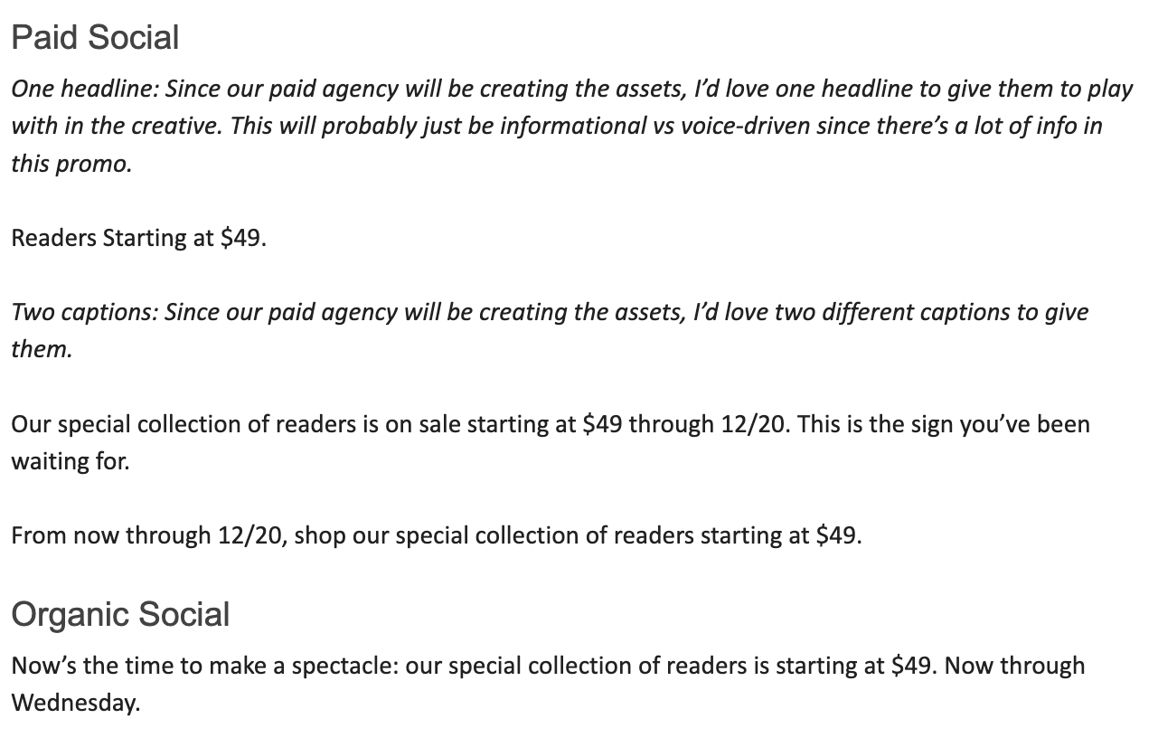 eyebobs, a fashion eyewear company with a unique brand voice, needed a set of paid social and organic social posts to use with their collection sale.
