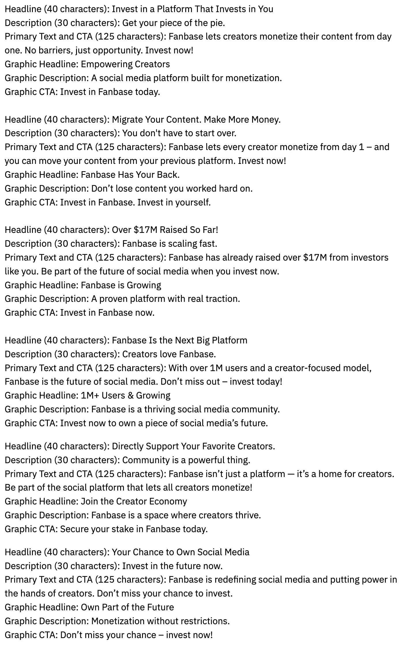 FanBase, a new social platform focused on profit-sharing with creators, wanted to use a popular webinar as the basis for a set of Meta posts.