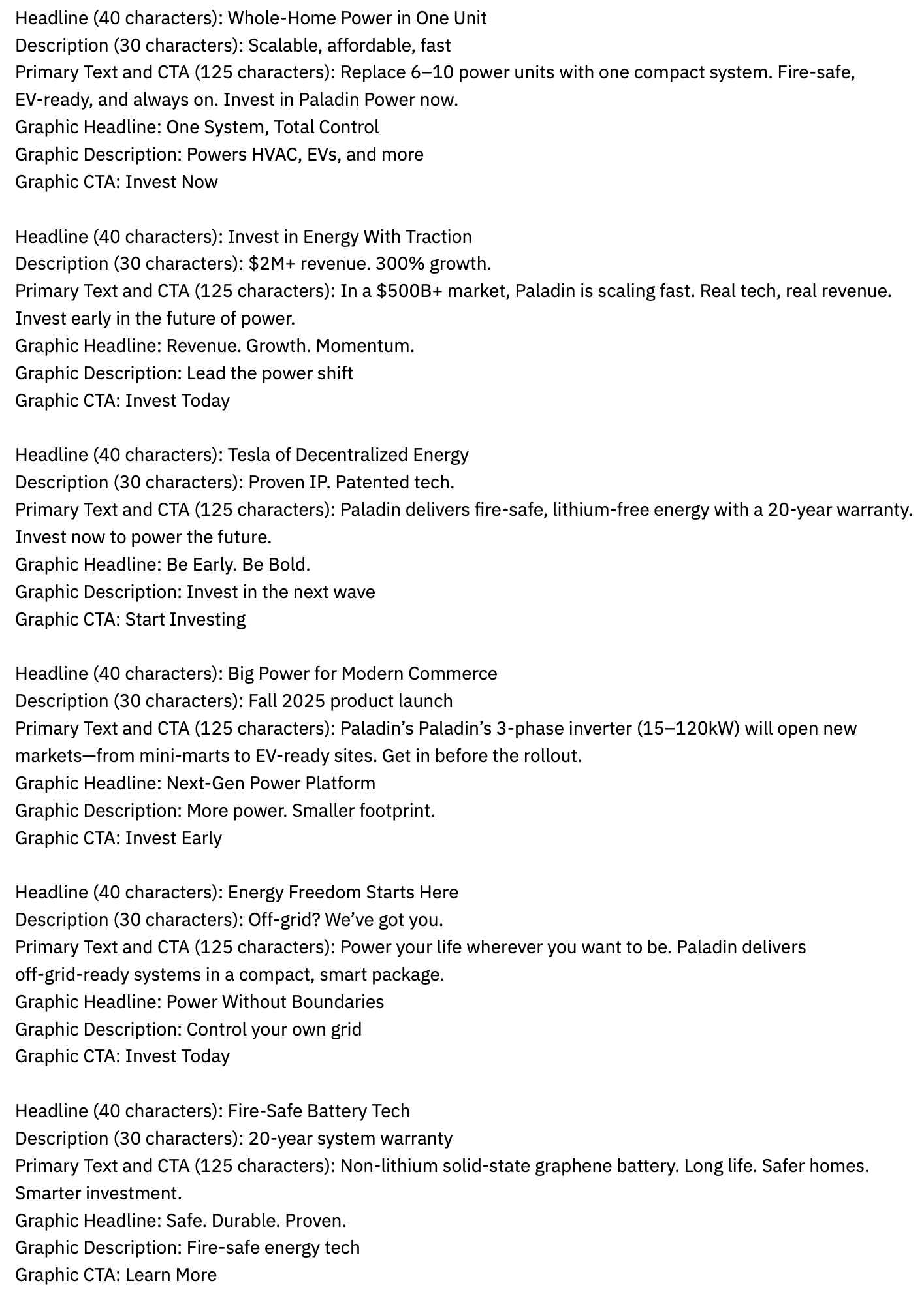 Paladin Power, a company providing whole-home energy solutions, needed a Meta ad campaign to go with their equity crowdfunding campaign launch.