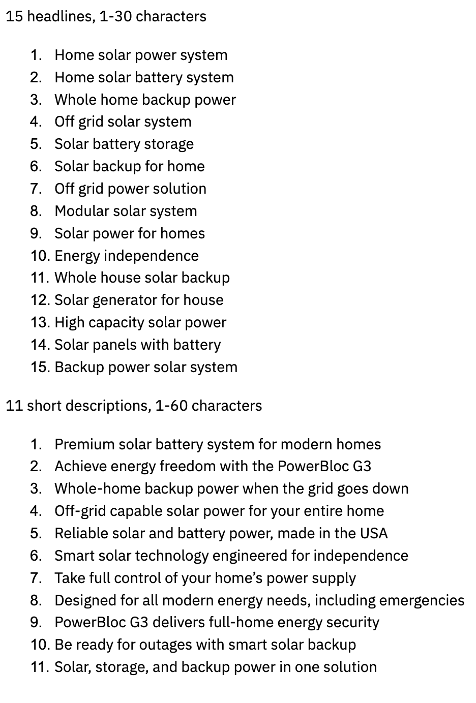 YouSolar is a company that creates premium solar energy systems for homes and businesses. They needed a set of headlines and descriptions to run in a Google PMAX campaign encouraging people to invest in their equity crowdfunding campaign.